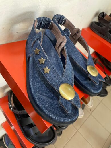 sandale orthopedique padam noir avec frange dorée