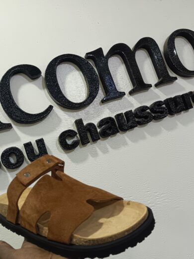 Sandale orthopédique en daim gris croisee avec anneau rond