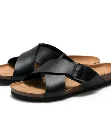 Sandale orthopédique noire croisée bouclées