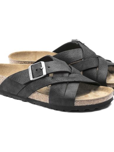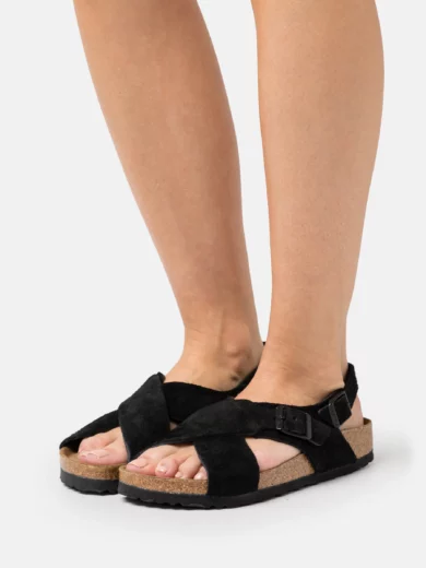 Sandale orthopédique noire daim croisée bouclées