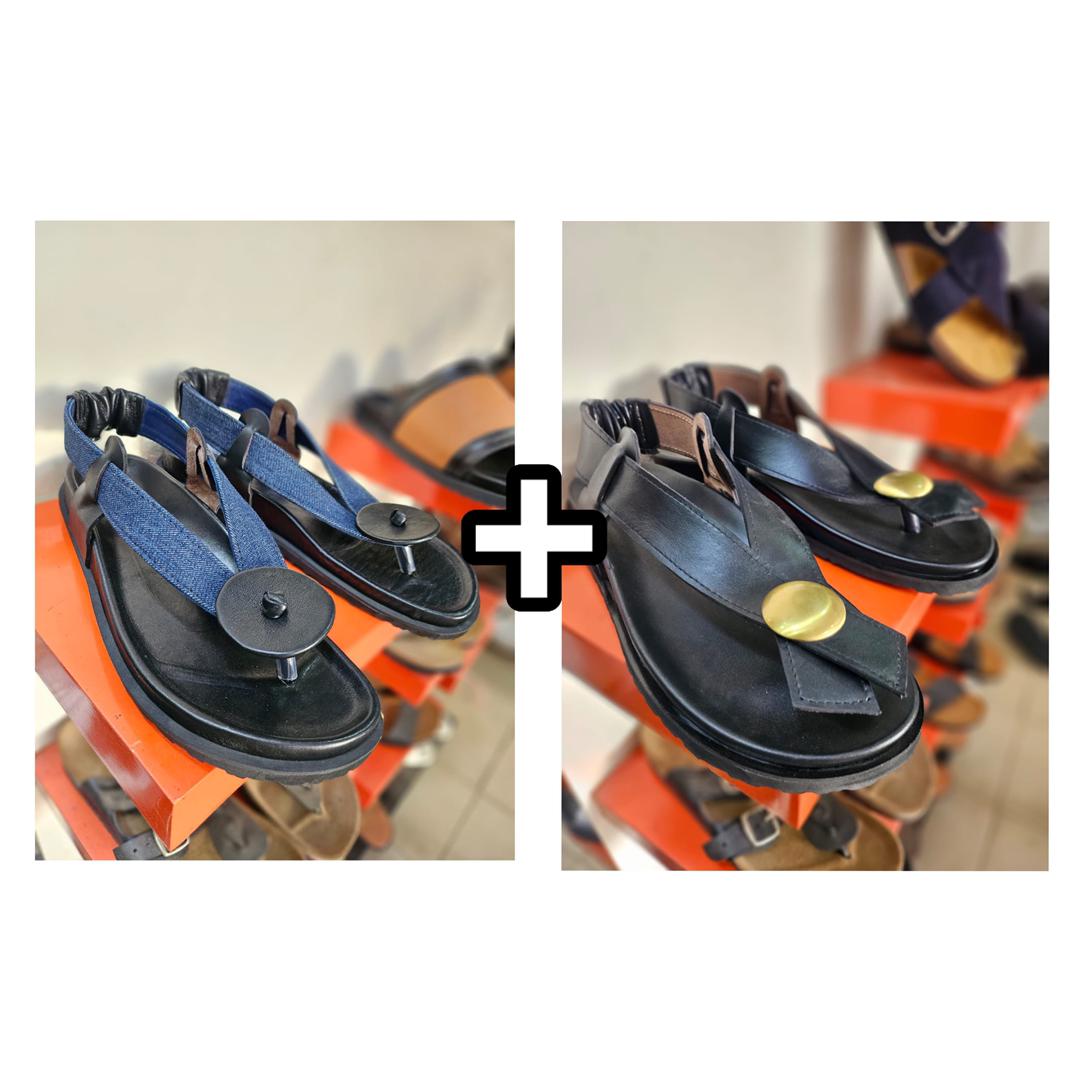 Tongs orthopédiques en cuir noir