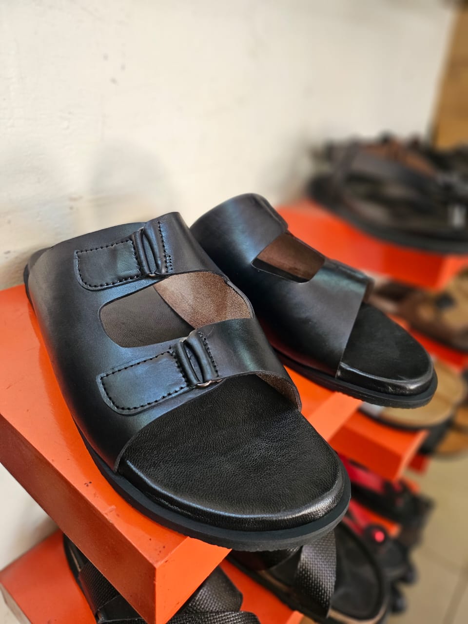 Tongs orthopédiques en cuir noir